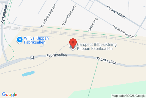 Carspects station på Fabriksallén i Klippan erbjuder besiktning av personbilar, motorcyklar och lätta lastbilar, samt efterkontroll.