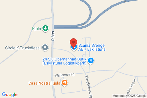Besikta Bilprovning i Eskilstuna – Kjula är belägen på Williams väg 1. Stationen utför besiktning av tunga fordon med en totalvikt över 3 500 kg.